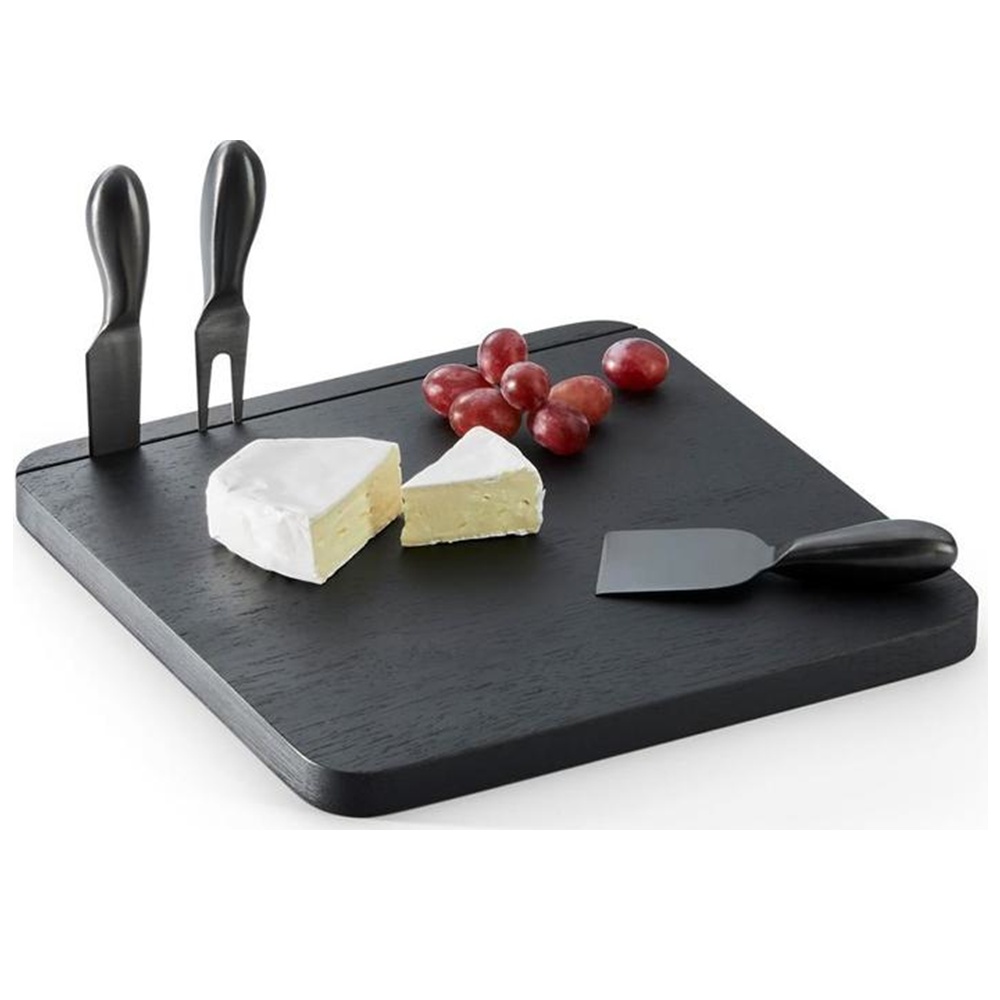 / FROMAGE CHEESEBOARD WITH 3 PCS KNIVES, STAINLESS STEEL, BLACK PVD PLATED, WOOD