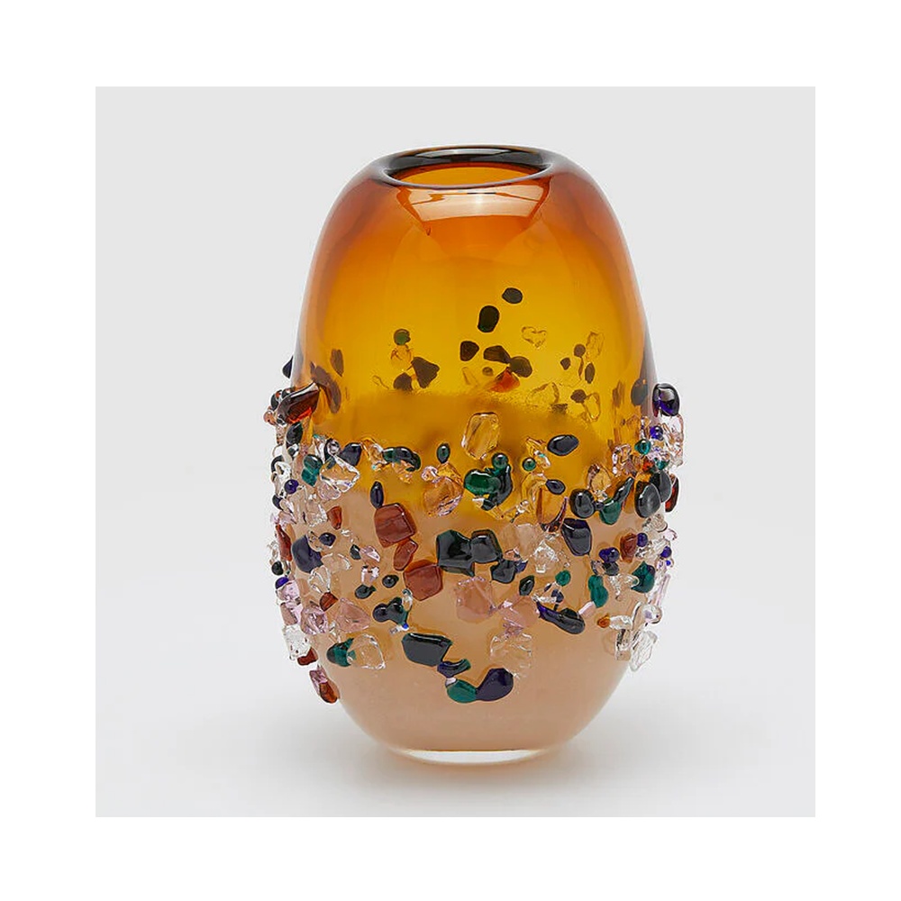 OVAL VASE GEMS AMBER, H:25 CM, L:18 CM